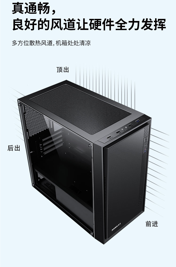 先马(SAMA)平头哥M2 电脑机箱台式机matx小机箱 玻璃侧透/支持240水冷/背线/USB3.0/独立电源仓/防尘易清洗