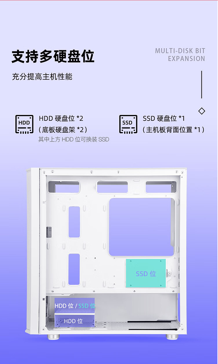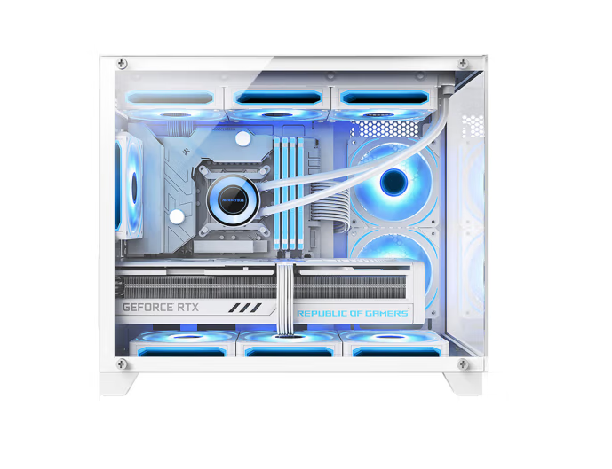 航嘉(Huntkey)S960暴风雪X白色全景版海景房机箱(双面钢化玻璃/左右分区/360水冷/9风扇位/MATX主板)