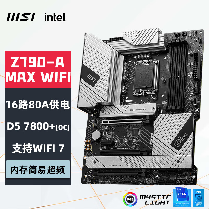 微星(MSI)PRO Z790-A MAX WIFI DDR5 WIFI 7主板 支持CPU14900K/14700K/14900KF(Intel Z790/LGA 1700)