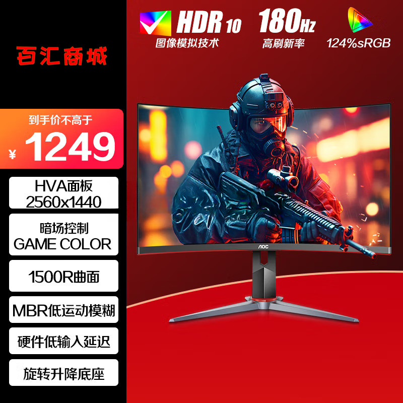 AOC 27英寸 2K高清 180Hz HDR10 快速液晶1ms 广色域 旋转升降 曲面电竞电脑显示器