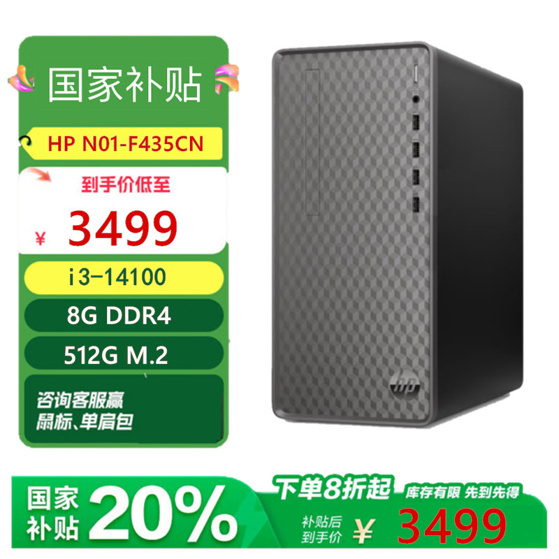 惠普(HP) N01系列 商用办公企业采购稳定型台式电脑主机 内置串口 商务办公台式机 整机(含23.8英寸FHD显示器) 新 14代i5/16G/1T固态/定制