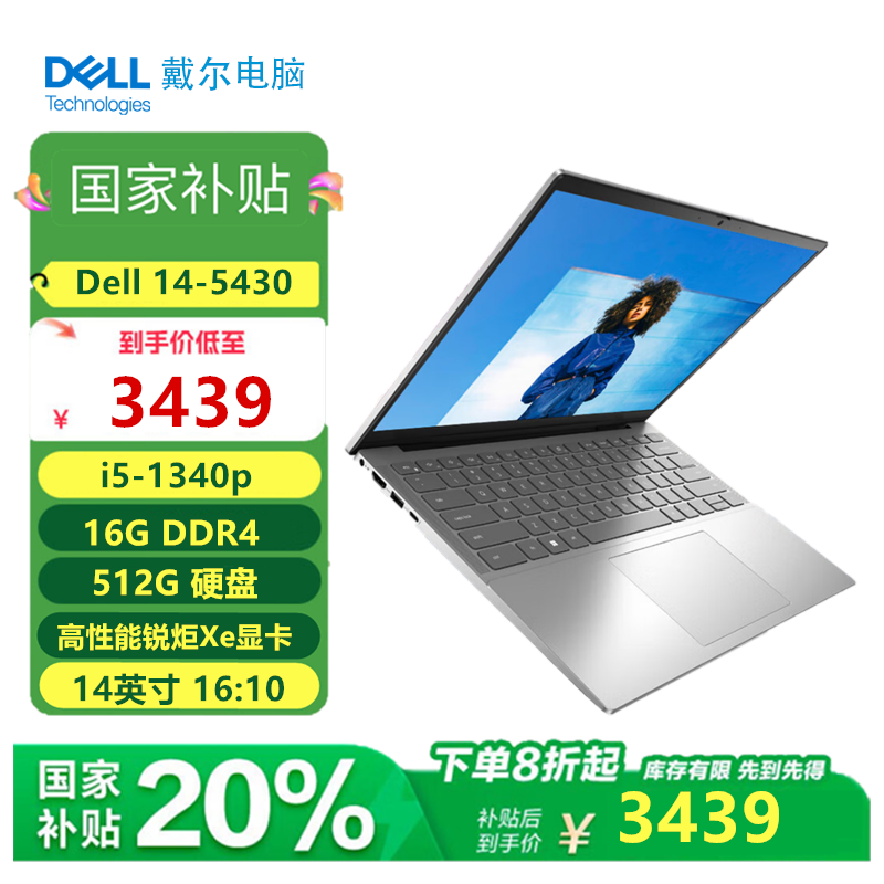 (国补)戴尔(DELL) 笔记本电脑 灵越14Pro 5430 14英寸全面屏13代酷睿高性能学生商务办公超轻薄本 13代i5 16G 512G固态 高清屏 标配 高性能锐炬Xe显卡