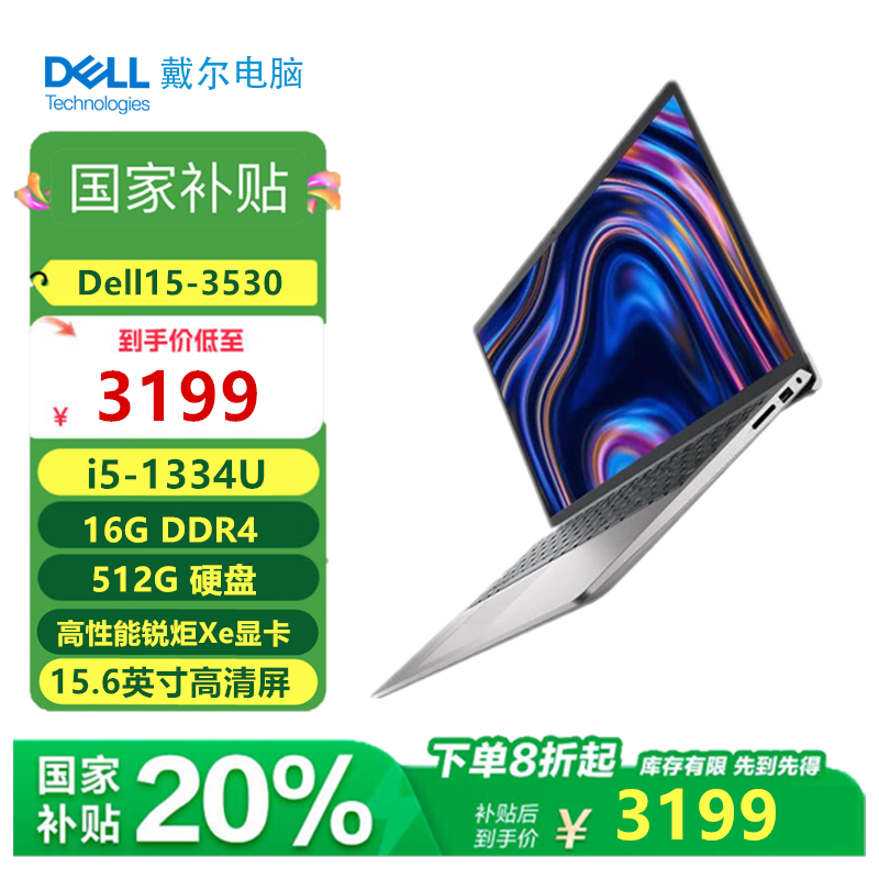 (国补)戴尔(DELL)灵越15 3530 15.6英寸英特尔酷睿笔记本电脑轻薄本学生网课商务可选1T办公本 i5-1334U/16GB/512G 官方标配